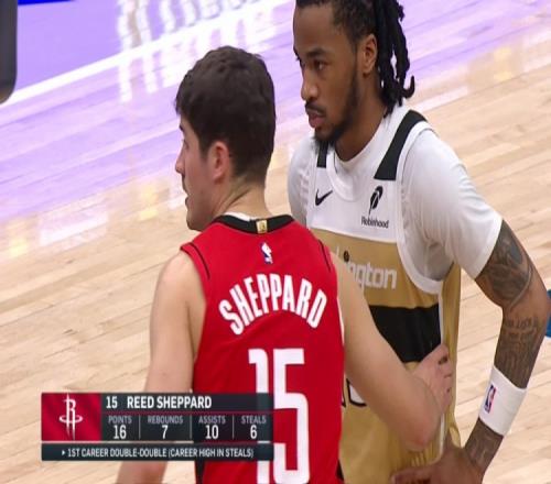 截至目前,火箭球員謝潑德出戰(zhàn)37分鐘,16投6中,三分10中3,罰球2中1,得到了16分7籃板10助攻6搶斷2蓋帽。