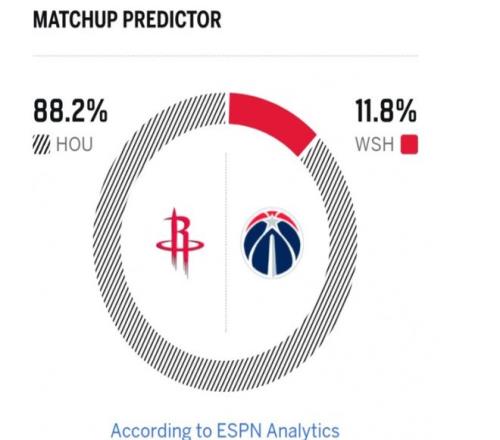 奇才這邊近期4連敗,16勝43負的戰(zhàn)績排在東部倒數(shù)第三,本賽季奇才的目標(biāo)就是擺爛,大交易后,特雷楊和濃眉哥相繼宣布因傷缺陣,球隊的傷病大名單多達8人!顯然,奇才從戰(zhàn)意與實力上講,都無力與火箭一戰(zhàn),ESPN對本場勝率進行了預(yù)測,火箭勝率高達88.2%,奇才則是11.8%。此役,奇才首發(fā)為庫利巴利、喬治、里斯、特雷·約翰遜、卡林頓;火箭先發(fā)為伊森、杜蘭特、申京、阿門、謝潑德。