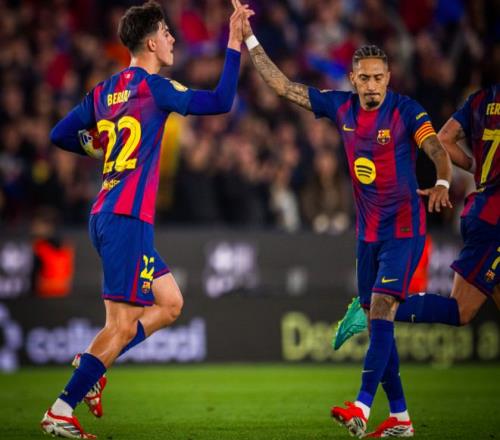 半場(chǎng)結(jié)束前,佩德里在禁區(qū)內(nèi)被放倒,裁判果斷判罰點(diǎn)球。拉菲尼亞操刀,輕松騙過(guò)穆索,弗里克實(shí)現(xiàn)了半場(chǎng)追回兩球的目標(biāo)。