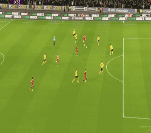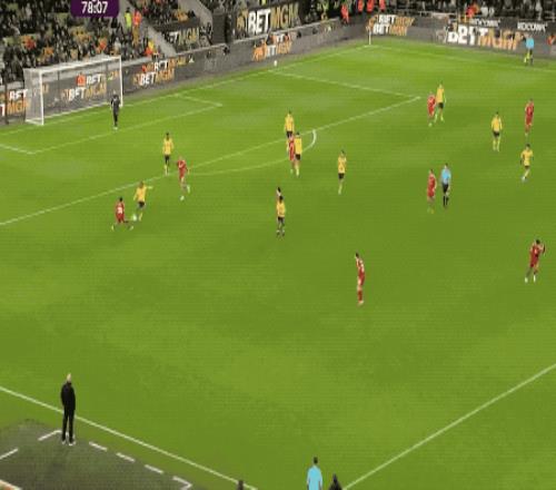 第94分鐘,阿利松開(kāi)球被攔截,特林達(dá)德的射門(mén)打在戈麥斯的腿上產(chǎn)生折射,狼隊(duì)打進(jìn)絕殺。