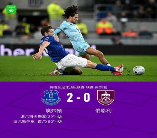 北京時(shí)間3月4日英格蘭足球頂級聯(lián)賽第29輪,埃弗頓主場對陣伯恩利。上半場塔爾科夫斯基頭球破門,下半場迪尤斯伯里-霍爾破門擴(kuò)大比分。最終比分埃弗頓 2-0 伯恩利。
