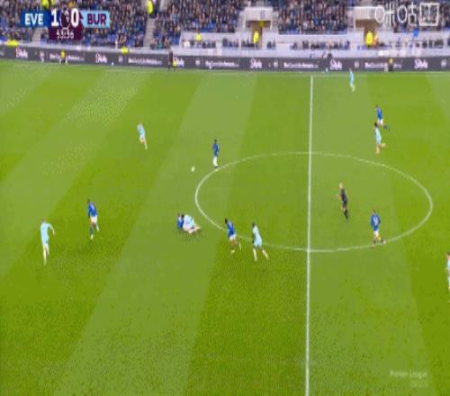 第59分鐘,恩迪亞耶助攻,霍爾輕挑破門,埃弗頓2-0伯恩利