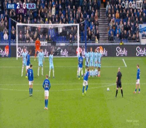 第31分鐘,加納任意球助攻,塔爾科夫斯基頭槌破門,埃弗頓1-0伯恩利