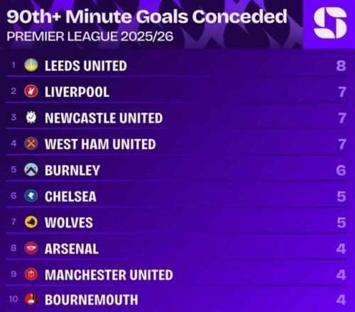 更讓人擔(dān)憂的是利物浦在比賽末段的崩盤頻率。據(jù)統(tǒng)計(jì),本賽季英超90分鐘或以后丟球榜上,利物浦以7球并列次席,僅次于利茲聯(lián)的8球。這意味著利物浦不是被絕殺,就是在被絕殺的路上。