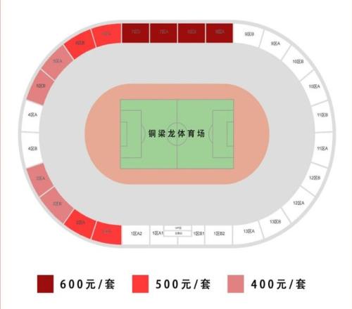 銅梁龍?bào)w育場(chǎng)散球迷套票價(jià)格及相關(guān)區(qū)域。 重慶銅梁龍俱樂部供圖