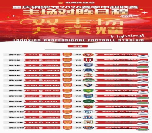 2026賽季中超聯(lián)賽重慶銅梁龍主場(chǎng)賽程。 重慶銅梁龍俱樂部供圖