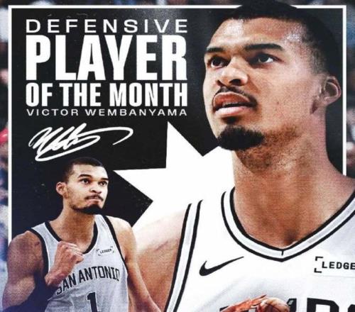 NBA官方宣布,文班亞馬拿到了2月份的月最佳球員和月最佳防守球員,馬刺隊(duì)的主教練米奇-約翰遜當(dāng)選了2月份的月最佳主教練,馬刺隊(duì)的哈珀當(dāng)選2月份的月最佳新秀。