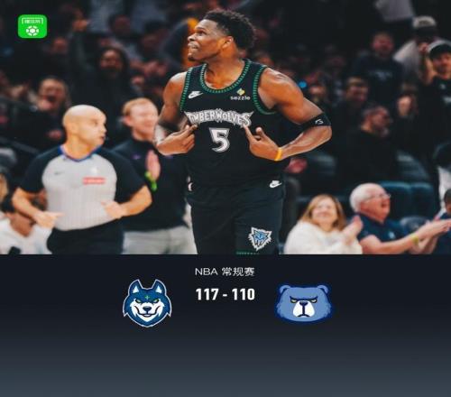 森林狼117110逆轉(zhuǎn)灰熊,愛德華茲41+6,李凱爾首秀2分1板