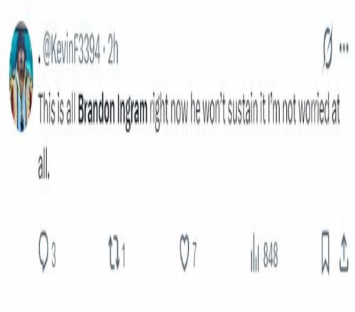 美球迷一早就嘲諷英格拉姆:這就是現(xiàn)在的布蘭登-英格拉姆,他不會一直保持這樣的狀態(tài),我一點也不擔心。(沒想到他還真的說中了)