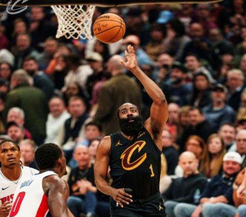 首節(jié)比賽,騎士外線表現(xiàn)十分糟糕,全隊三分球合計只有10中1,命中率10%,僅哈登命中唯一一記進球。