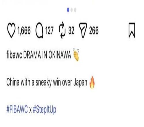 當(dāng)中國男籃在沖繩客場通過頑強(qiáng)拼搏,以87比80的分?jǐn)?shù)逆轉(zhuǎn)東道主后,國際籃聯(lián)的官方社交賬號(hào)竟然公開發(fā)布動(dòng)態(tài),聲稱中國隊(duì)“偷走了勝利”
