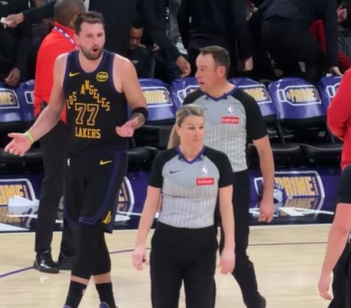 東契奇向裁判抱怨后者擺手扭頭離去!前者攤手再示不滿!