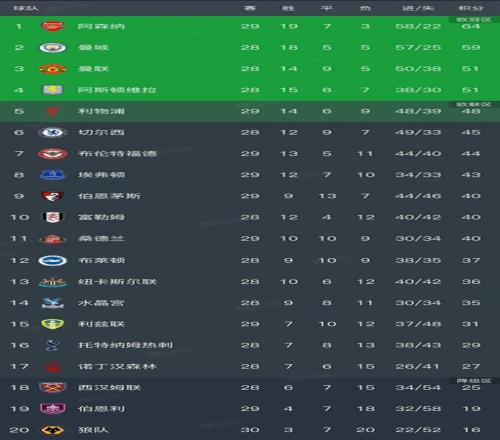 英超第29輪結(jié)束了4場(chǎng)比賽,最新積分榜如下!