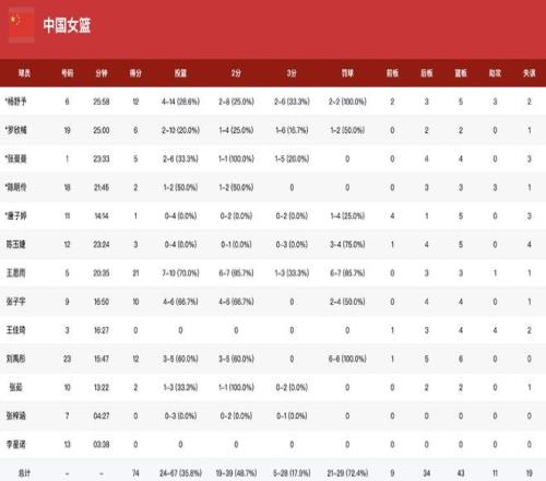 此役,中國女籃全隊三分28投5中,命中率僅為17.9%,此外還出現(xiàn)了19次失誤。