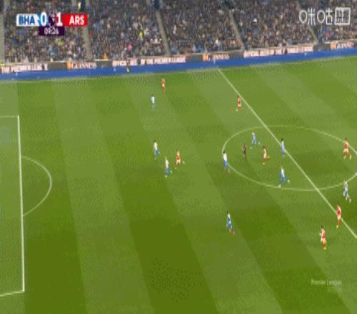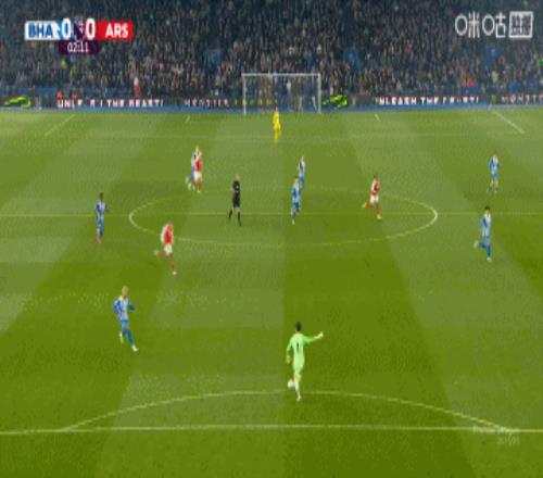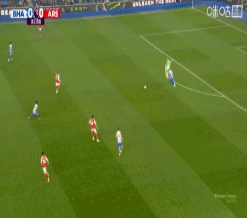 上半場(chǎng)補(bǔ)時(shí)3分鐘。半場(chǎng)戰(zhàn)罷,布萊頓0-1阿森納。