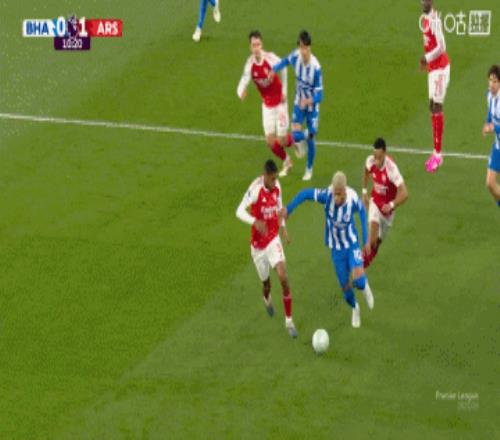 半場(chǎng)阿森納10布萊頓薩卡破門拉亞失誤加布里埃爾關(guān)鍵解圍