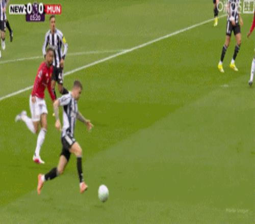 這似乎反而激發(fā)了主隊(duì)的斗志,本賽季歐冠打入10球的頭號球星戈登左路突破,布魯諾·費(fèi)爾南德斯伸腳攔截將其絆倒,主裁判罰點(diǎn)球。戈登主罰命中,少打一人的紐卡斯?fàn)?-0領(lǐng)先曼聯(lián)。