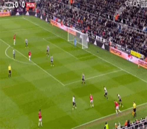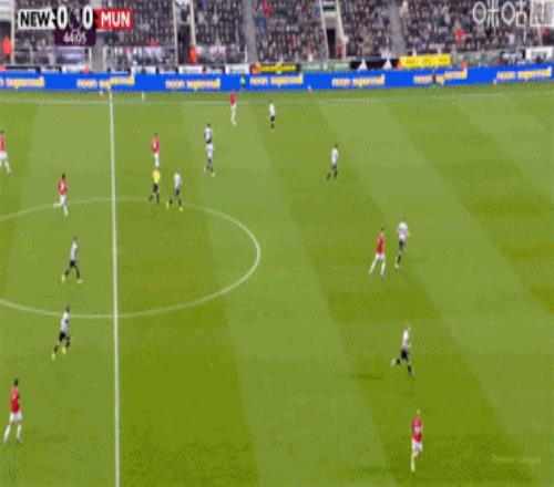比賽甫一開球,曼聯(lián)就遭遇驚魂時(shí)刻?;省ぬ乩锲栍衣穫髦?,皮球高高越過塞納·拉門斯,擊中了門框。隨后,紐卡斯?fàn)栔圃炝烁嗟耐{,幸好前紅魔邊鋒安東尼·埃蘭加等「喜鵲」攻擊手射門缺乏準(zhǔn)頭,沒有再威脅到拉門斯。