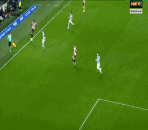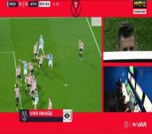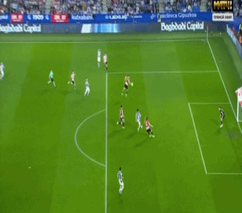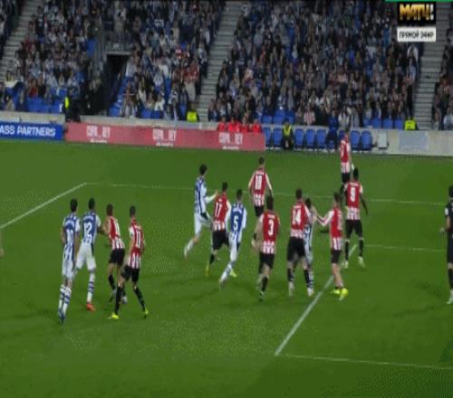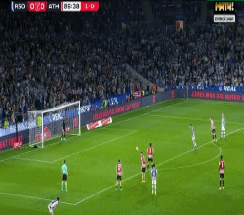 第87分鐘,埃雷拉造點,奧亞薩瓦爾主罰點球命中,皇家社會1-0畢爾巴鄂