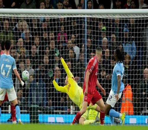 比賽開始后曼城沒有意外立馬展開攻勢,第7分鐘,福登前場卸球回敲,塞門約閃開角度爆射擊中了邊網(wǎng);第19分鐘,哈蘭德前場積極反搶后斷球,B席隨即跟進(jìn)低射射門被澤爾斯撲??;第23分鐘,福登外圍突施冷箭,再次被澤爾斯化解;第26分鐘,森林終于打出一次像樣的反擊,不過吉布斯-懷特的跑位穿插低射被狀態(tài)穩(wěn)定的多納魯馬封出。