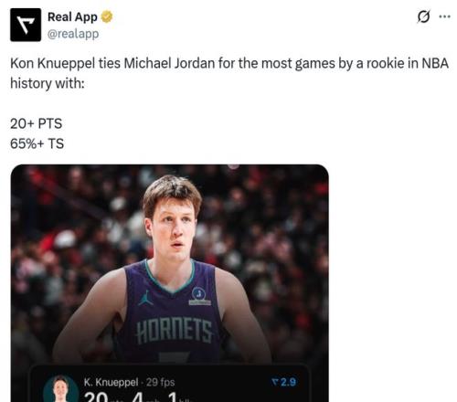 這已經(jīng)是克努佩爾新秀賽季至今第26場(chǎng),至少以65%的真實(shí)命中率砍下20+得分表現(xiàn),成功追平喬丹保持的神紀(jì)錄,按照克努佩爾的表現(xiàn)與剩余場(chǎng)次他反超喬丹只是時(shí)間問(wèn)題。