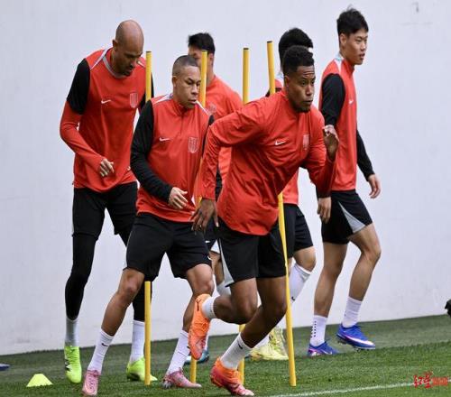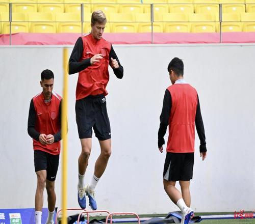 ▲成都蓉城隊員正在進行賽前踩場訓練