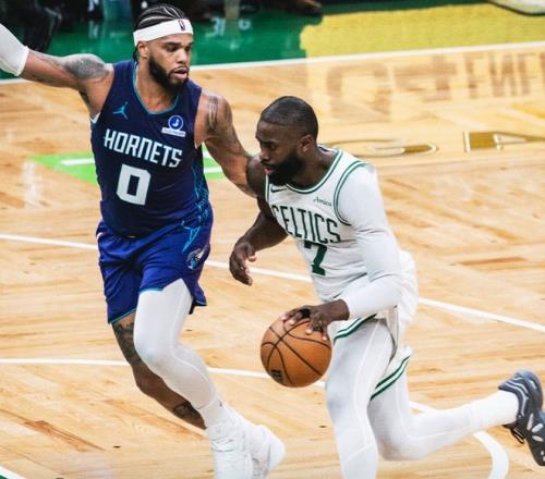 綠凱慘敗黃蜂,這場(chǎng)比賽杰倫-布朗手感不佳,33分鐘,19中7,三分4中1,罰球6中5,拿到20分11籃板7助攻,命中率36.8%,三分命中率25%,但他隔扣迪亞巴特的一球引爆北岸花園球館。