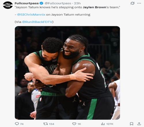 塔圖姆已淪老二甜瓜JR都稱布朗是綠凱領(lǐng)袖美記:獺兔早已知悉