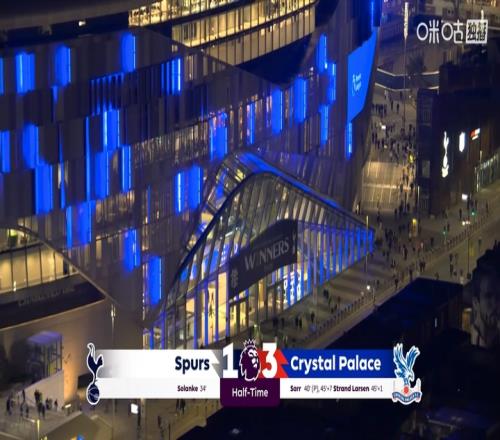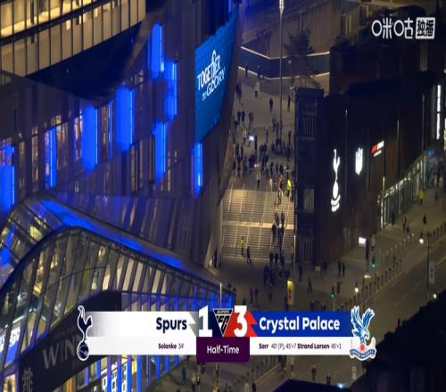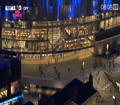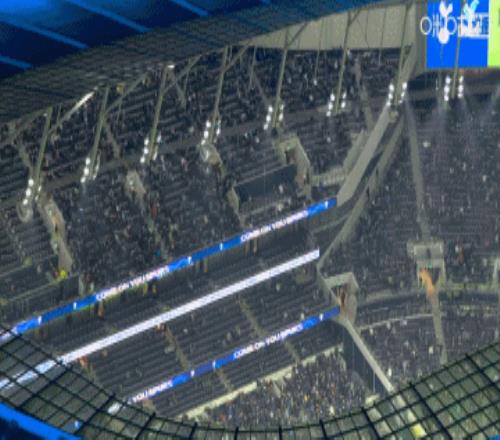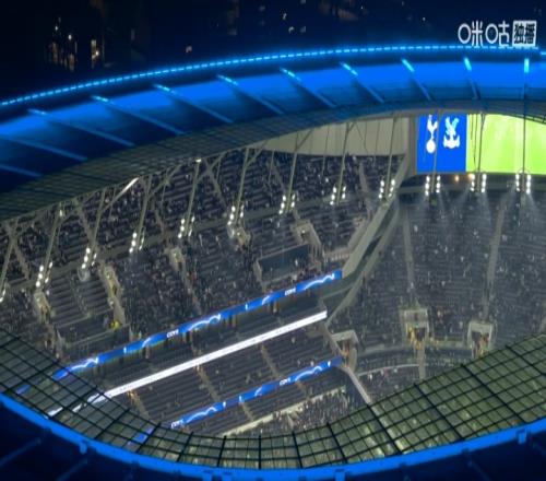 下半場(chǎng)開(kāi)始前,轉(zhuǎn)播鏡頭的俯視角拍攝熱刺球場(chǎng)坐席↓