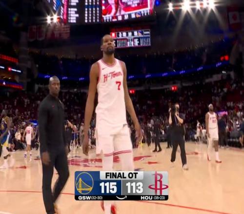 本賽季杜少的罰球命中率高達(dá)89%,可是這場比賽加時賽還剩下29秒的時候,梅爾頓對杜蘭特犯規(guī),給了他三次罰球的機(jī)會,結(jié)果之前連續(xù)36次罰球命中的他,在前兩罰打進(jìn)之后,第3罰竟然罰丟了!本來分差是3分,他全中雙方追平,可是沒有想到,最后杜蘭特罰丟了一個關(guān)鍵球,導(dǎo)致火箭112:113落后1分。