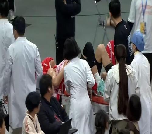 徐昕毫無防備,當(dāng)場彎腰跪地,雙手死死按壓疼痛部位,臉色瞬間慘白,呼吸急促,無法自主起身。隊醫(yī)再次緊急進場,對其進行針對性檢查與冰敷處理。
