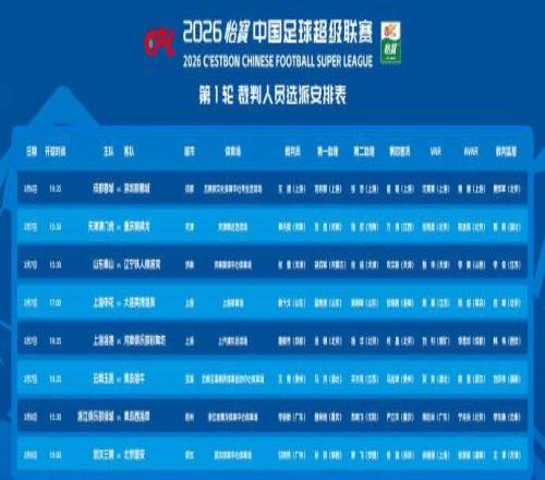 閃電體育3月6報(bào)道中足聯(lián)公布了中超聯(lián)賽首輪裁判執(zhí)法名單,山東泰山主場(chǎng)對(duì)陣遼寧鐵人的主裁判為張雷。