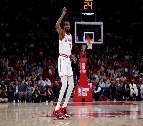 本場(chǎng)比賽中,雖然火箭最終輸?shù)袅吮荣?,但是球?duì)的先發(fā)鋒線(xiàn)球星凱文-杜蘭特(Kevin Durant)也算是盡力了。杜蘭特全場(chǎng)出場(chǎng)41分21秒,投籃16中8,三分線(xiàn)外5中3,罰球6中4,得到了23分6籃板3助攻4搶斷1蓋帽的數(shù)據(jù),還有3次失誤,正負(fù)值為-5。杜蘭特在進(jìn)攻端也算是手感尚可,也算是全隊(duì)為數(shù)不多在進(jìn)攻端保持了應(yīng)有水準(zhǔn)的球員。杜蘭特在防守端其實(shí)也是非常努力的,也同樣是起到了很好的效果的。然而其實(shí)大家都看得到,杜蘭特在場(chǎng)上時(shí),球隊(duì)的空間存在著明顯的問(wèn)題,或者是除了杜蘭特之外,火箭也只有里德-謝潑德(Reed Sheppard)一名真正具備外線(xiàn)投籃威脅的球員,因此他也打得非常吃力。到了最后時(shí)刻,年邁的杜蘭特體力不支,出現(xiàn)了罰球失準(zhǔn)的情況,最終球隊(duì)也是輸?shù)袅吮荣悺?/p>