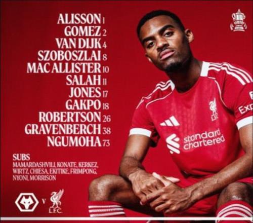 利物浦客戰(zhàn)狼隊(duì):薩拉赫搭檔加克波,索博、麥卡利斯特出戰(zhàn)