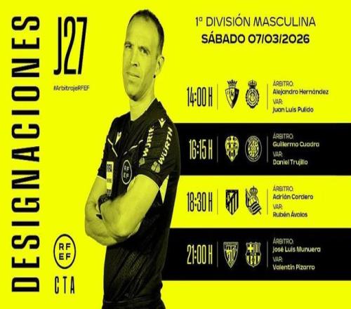 西班牙足協(xié)官方公布了當(dāng)?shù)貢r(shí)間周六4場(chǎng)西甲比賽的裁判安排,何塞-穆努埃拉將執(zhí)法巴薩客戰(zhàn)畢爾巴鄂競(jìng)技。