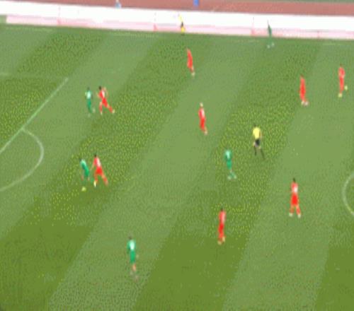 但是維塔爾傳球給到相對空位的盧永濤,后者持球推進(jìn)幾步后沒能轉(zhuǎn)向分球給到遠(yuǎn)端,而是繼續(xù)傳近端陷入對方包圍圈就成了問題。導(dǎo)致球在倒腳后,再一次回到靠后的維塔爾腳下。