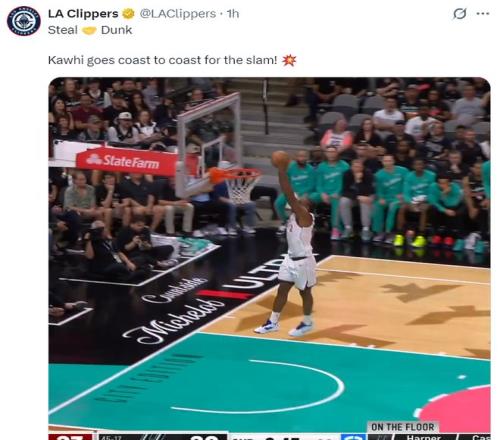 第二節(jié)帶第二陣容的倫納德開始進(jìn)入了進(jìn)攻模式,他單節(jié)5中3拿到7分3籃板1助攻1搶斷,他的搶斷一條龍暴扣也非常精彩,快船也一度領(lǐng)先馬刺達(dá)到25分之多,上半場快船攻防都順風(fēng)順?biāo)?/p>