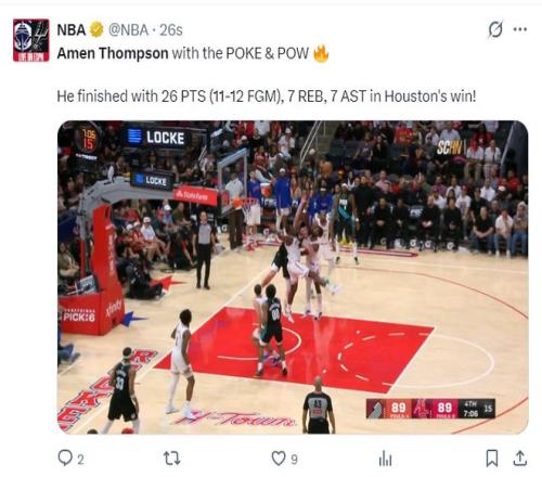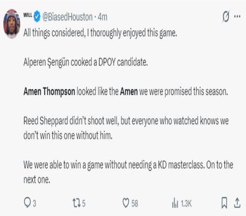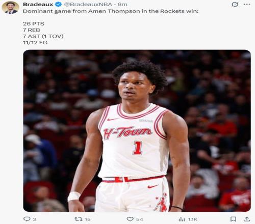 火箭記者Bradeaux寫道:阿門是火箭隊贏得這場比賽的關鍵功臣。