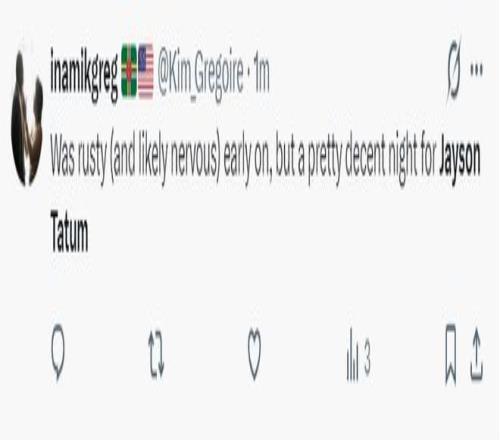 綠凱球迷:塔圖姆開場狀態(tài)有些不穩(wěn)定或許是還有些緊張,但對塔圖姆來說這已經(jīng)是一個相當(dāng)不錯的夜晚。