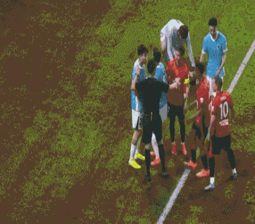 主裁王迪第一時(shí)間介入調(diào)解,但雙方情緒已達(dá)沸點(diǎn),隨后更多球員圍攏而來(lái),有人試圖隔開(kāi)沖突主體,有人高聲助威,更有數(shù)人發(fā)生輕微推搡,現(xiàn)場(chǎng)秩序?yàn)l臨失控邊緣。