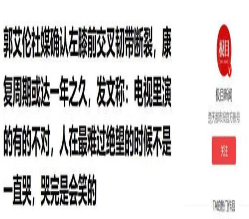 極目新聞|郭艾倫社媒確認(rèn)左膝前交叉韌帶斷裂,康復(fù)周期或達(dá)一年之久,發(fā)文稱:電視里演的有的不對(duì),人在最難過(guò)絕望的時(shí)候不是一直哭,哭完是會(huì)笑的