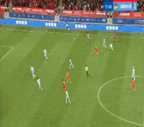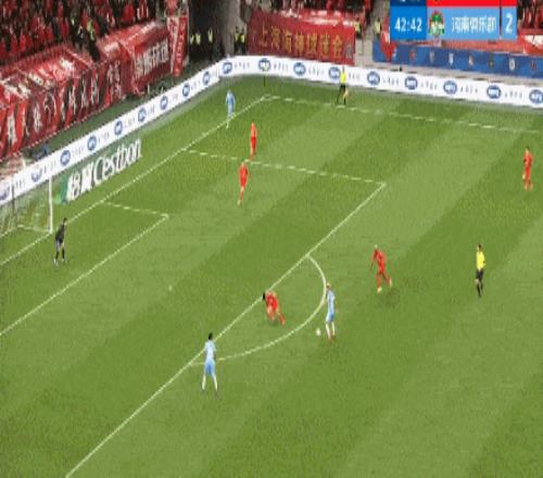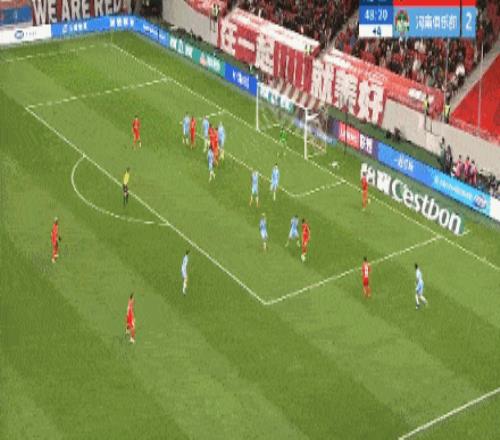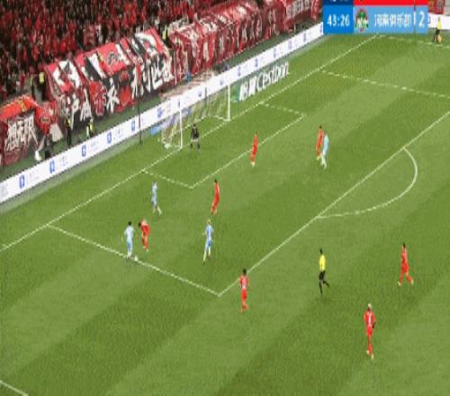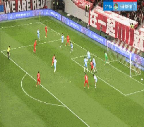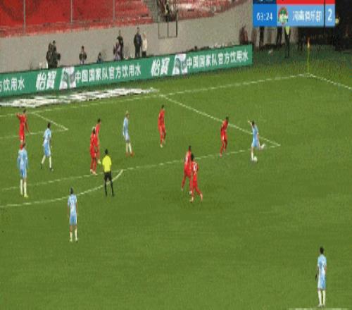 第44分鐘,河南隊(duì)再次錯(cuò)失良機(jī),姆布拉腳后跟傳球,納薩里奧擊中立柱。
