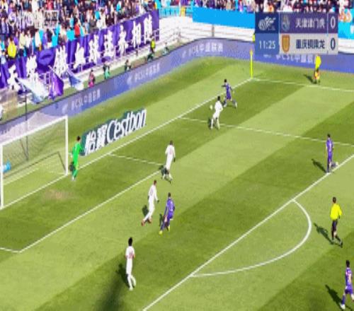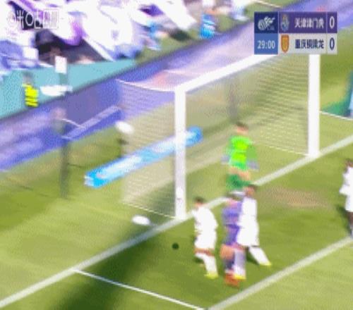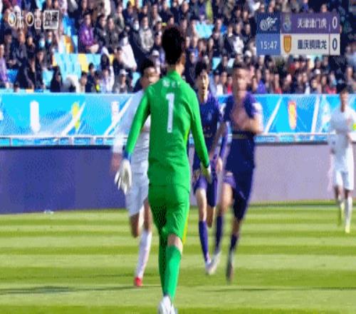 第16分鐘,姚浩洋再次沖出禁區(qū),完成一次魚躍頭球解圍,破壞津門虎的威脅進攻。