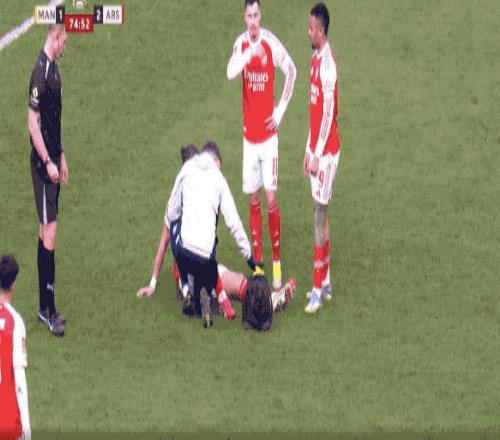第75分鐘,卡拉菲奧里大腳解圍過(guò)后,直接坐在地上,疑似肌肉出了問(wèn)題,無(wú)法堅(jiān)持,被薩卡換下。