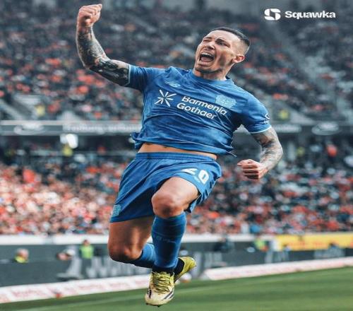 德甲第25輪,勒沃庫(kù)森客場(chǎng)3-3戰(zhàn)平弗賴堡,格里馬爾多本場(chǎng)比賽打入1粒任意球。