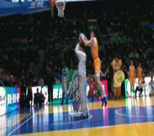 他的第二扣還是飛人動作,這一次一口氣飛躍5人完成雙手反扣,但只拿到49分,給出9分的是中國籃球名人堂女籃成員李昕。
