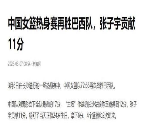 再次戰(zhàn)勝巴西隊(duì),也說(shuō)明了中國(guó)女籃的實(shí)力是毋容置疑的。