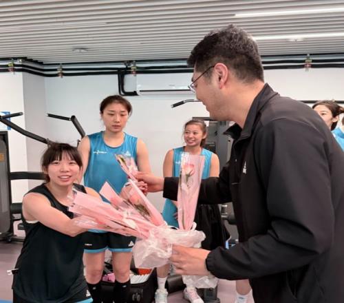 李指導(dǎo)深知姑娘們訓(xùn)練的艱辛,他親手為每一位教練員和隊員送上鮮花,感謝她們?nèi)諒?fù)一日的刻苦訓(xùn)練、奮勇拼搏,祝福每一位女籃姑娘女神節(jié)快樂,愿她們在賽場綻放鋒芒,在生活里自帶光芒。