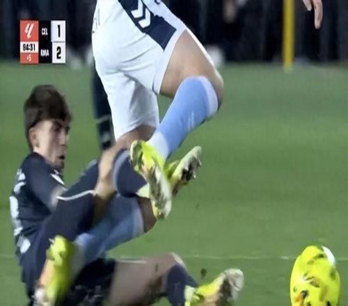 比賽的轉(zhuǎn)折點發(fā)生在補(bǔ)時階段。當(dāng)時比分膠著,皇馬球員曼努埃爾·安赫爾在一次拼搶中倒地,試圖從塞爾塔球員費爾·洛佩斯腳下斷球。電視回放清晰地顯示,這位皇馬青訓(xùn)小將根本沒有觸碰到皮球,而是直接伸出右腿將對方絆倒。