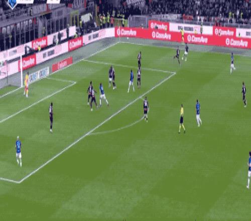 米蘭很快給出回應(yīng),第35分鐘,福法納送出妙傳,埃斯圖皮尼安打進了加盟球隊的首個進球。